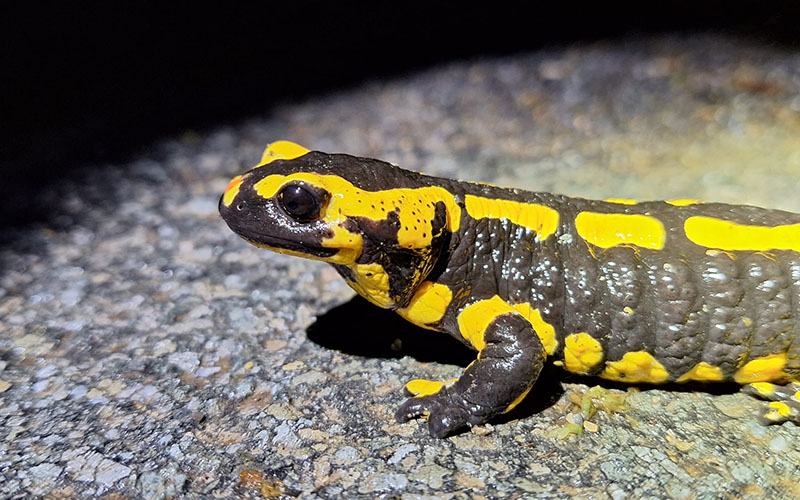 Dieses Mal geht es um den Feuersalamander, der bekannt ist für seine auffällig schwarz-gelben Musterung und den man wegen seiner heimlichen Lebensweise in unseren Laub- und Mischwäldern selten zu Gesicht bekommt.