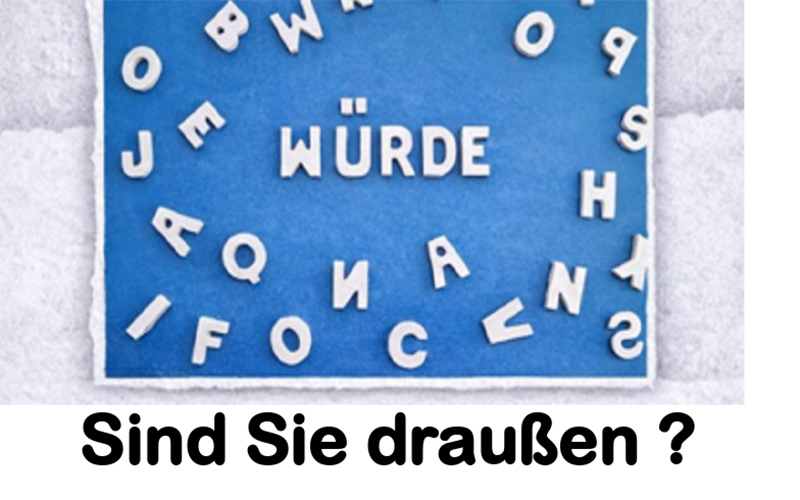 Unter dem Motto »Sind Sie draußen?« sind Bürger vom 20. bis 27. März eingeladen, sich mit Fragen rund um gesellschaftliches Zusammenleben, Haltung und Perspektiven auseinanderzusetzen. Die Ausstellung schafft einen Raum zum Innehalten und Nachdenken über unsere Gesellschaft.