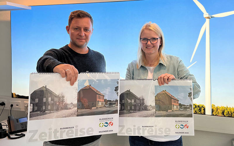 Er zeigt historische Aufnahmen aus den Blomberger Ortsteilen, die mit aktuellen Fotos derselben Motive kombiniert wurden – Vergangenheit und Gegenwart im direkten Vergleich. Der Kalender ist ab sofort bei den BVB erhältlich. Der Erlös geht an die Bürgermeister-Heinrich-Fritzemeier-Stiftung.